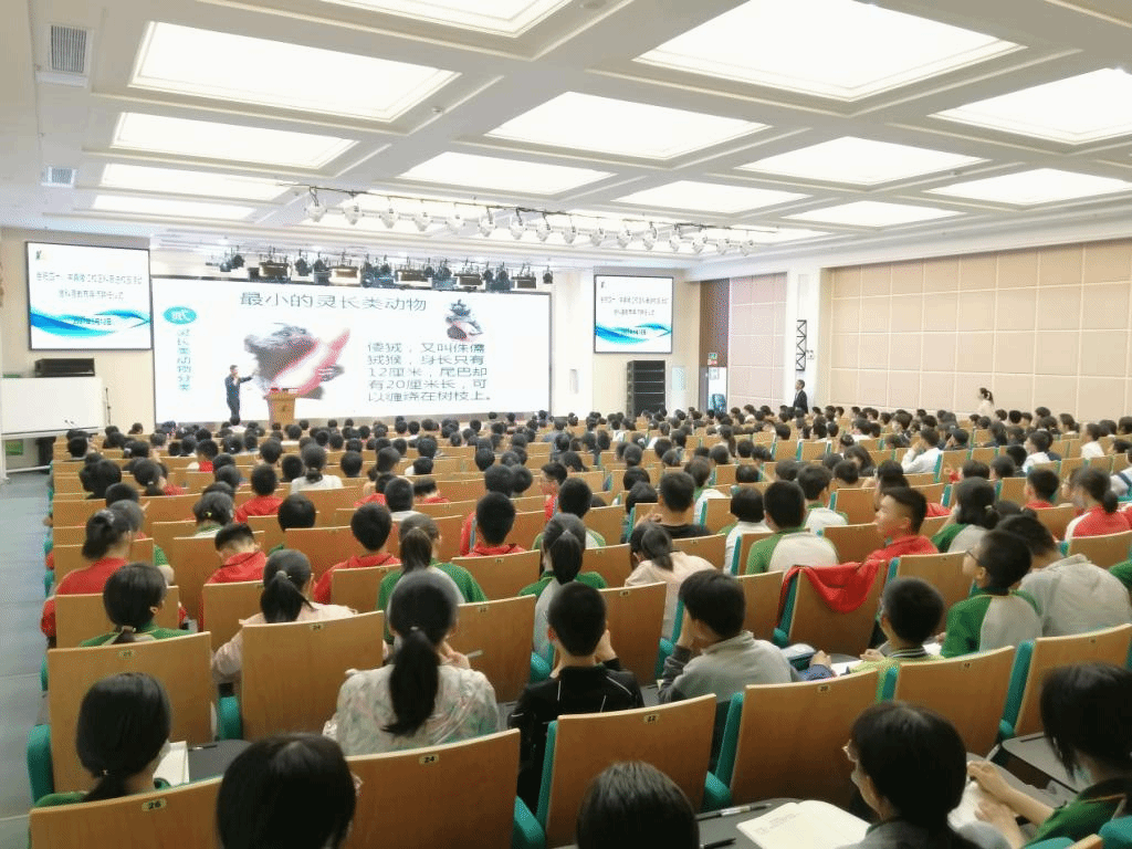 聘任仪式结束后,欧祖兰带领同学们在校园里开始了一堂别开生面的植物学课——《识花•认树,带你走进植物的世界》,轻摘一片不起眼的香樟树叶,观察脉络,细嗅芳馨;细采一朵粉嫩可人的杜鹃,剖析结构,满手余香。听过欧教授的讲解后,同学们不仅能够喊出植物的名称,还能清楚地分辨出植物的特征;同学们既学习了新知识,又对奇妙的大自然有了更深一层的理解。朱勇为同学们主讲了题为《自然界中的美猴王》的讲座,讲座从中国的猴文化引入,讲述了灵长类动物的特征,详细介绍了多种奇特的猴类。有趣的主题让同学们目不转睛地盯着大屏幕,同学们时而对秃面猴稀奇古怪的面庞啧啧称奇,时而又被憨态可掬的狒狒引得笑颜频开,时而为岌岌可危的金丝猴忧心忡忡。整场讲座同学们听得聚精会神,感叹时间过得飞快。