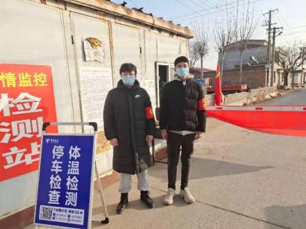 崔庄镇郝王庄村封锁了全部道路,就留下一条主路,设置了疫情防控监测站,对外来车辆劝返,其他车辆进村时则需要登记,测体温。看到村里正在招募大学生志愿者,姜宇轩即刻就报了名,主要负责车辆的放行和来往人员登记工作。
