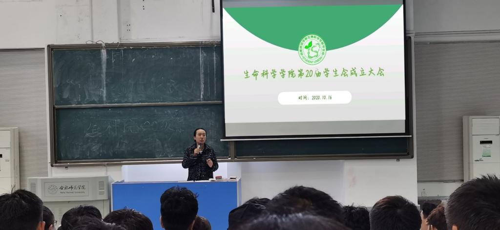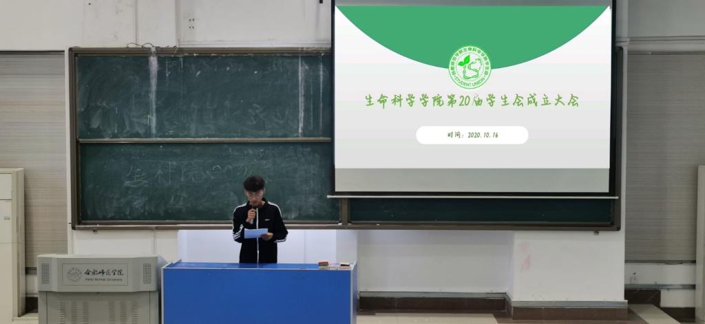 本网讯10月16日中午,生命科学学院在逸夫楼西阶四教室召开第二十届学生会成立大会。生命科学学院党委书记郭桃芬、分团委书记黄伟丽、2020级辅导员黄洁以及全体学生会成员参加了本次大会。会议由学生会文体部部长潘嘉伟主持。