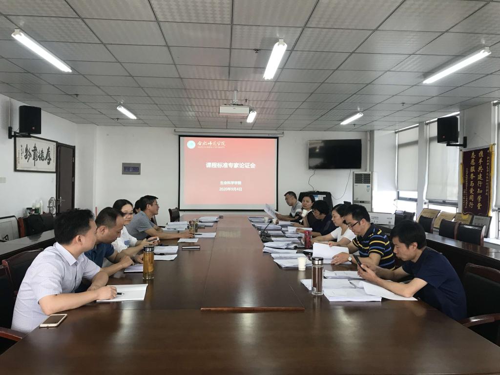 本网讯 9月4日上午,生命科学学院在行知楼1502进行了2020版本科课程标准的论证工作,邀请了安徽农业大学教授蔡永萍,合肥工业大学教授汪惠丽,食品行业协会秘书长邵栋梁,安徽省农业科学院植物保护与农产品质量安全研究所研究室主任段劲生,合肥市九中教师雕玲,安徽九方药物研究院实验室主任牛海军担任论证专家,该院院长徐忠东,副院长朱桂兰及专业负责人参加了此次论证会。