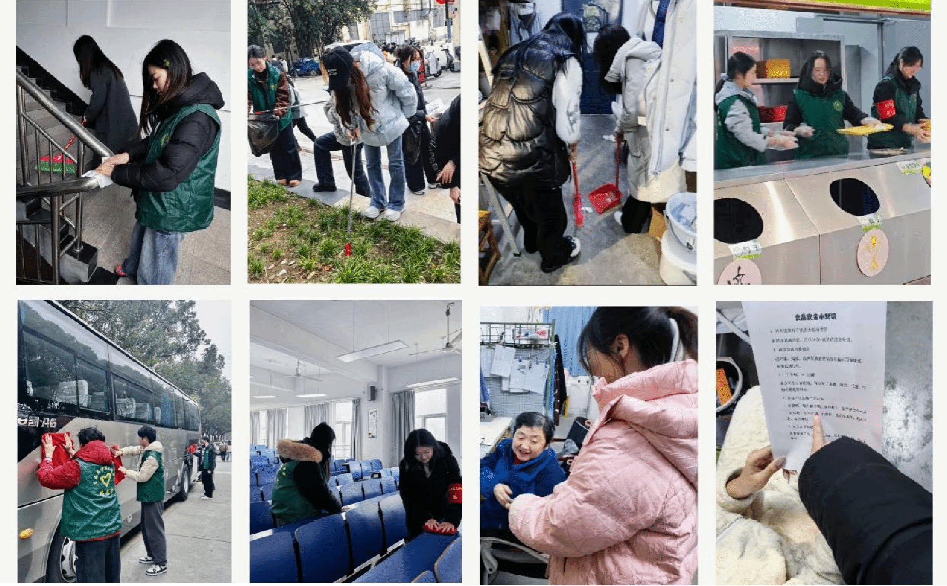 3月5日,学院团委联合各年级团支部开展“学雷锋、净校园、树新风”主题志愿服务活动。学院学子化身校园文明的践行者与守护者,各班级结合专业特色多点发力,将志愿精神融入实际。在环境整治中,志愿者们深入教学楼、绿化带清理卫生死角,细致擦拭校车车身与扶手,让校园环境焕然一新。食堂内,志愿者们张贴节俭标语与食品安全海报,协助清洁餐桌、回收餐盘,引导文明就餐,将劳动实践融入日常点滴。实验室里,志愿者们规范实验室仪器摆放、整理药品柜,以实际行动守护科研安全,展现学院学子的专业素养与责任担当。