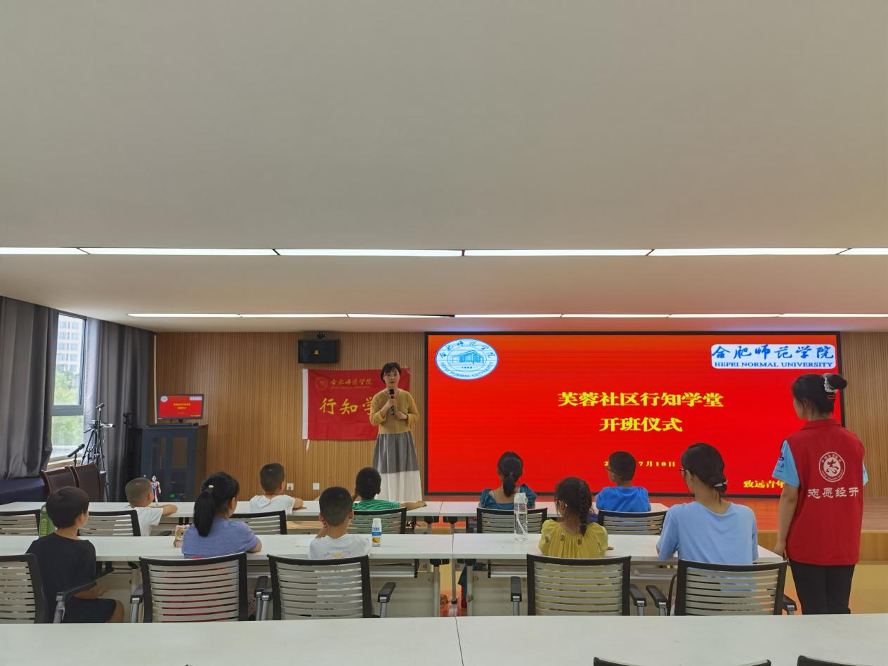 本网讯 弘扬行知文化,践行行知精神,绽放青春风采。7月10日,beat365正版唯一官网牵头举办的芙蓉社区行知学堂在合肥市蜀山区芙蓉社区党群服务中心正式开班。学堂指导教师王玲玲、8名“小先生”、全体小学员及家长共同参加开班仪式。