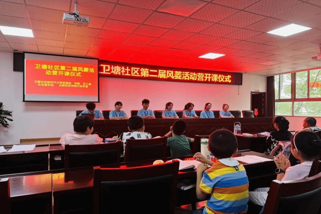 本网讯 7月3日,来自合肥师范学院的8名“小先生”组成的卫塘社区“风菱少年活动营”行知学堂团队在合肥市包河区卫塘社区党群服务中心正式开班,开启了为期25天的暑期社会实践活动。