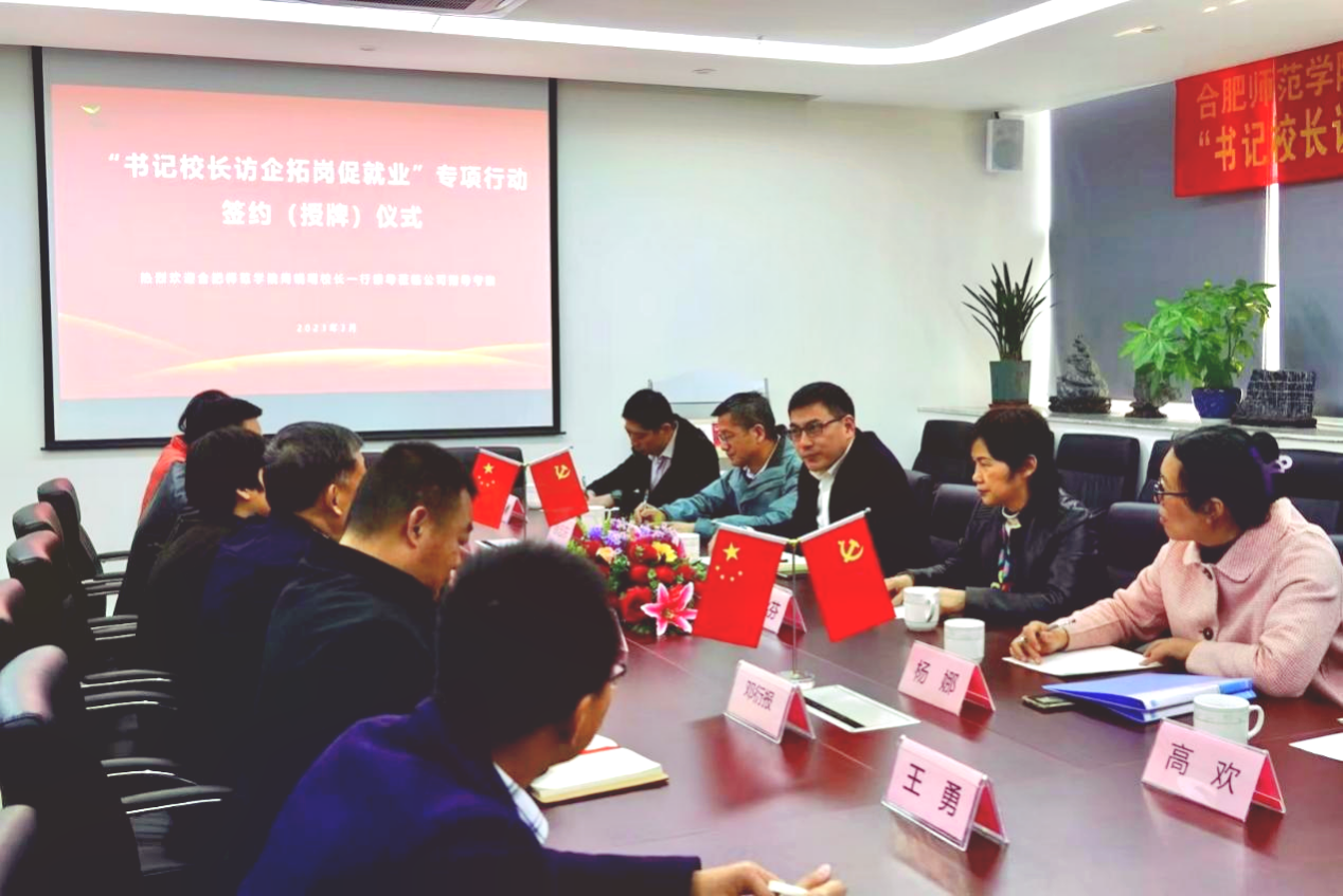 周端明代表学校对各家公司的热情接待和对我校毕业生实习就业工作的支持深表感谢,并向各公司简要介绍了学校发展历史、办学定位、专业分布、师资队伍、学生规模及人才培养等方面情况。周端明指出,学校坚持立足合肥、服务安徽、辐射长三角,不断深化“举行知旗、走应用路、创师范牌”的特色发展之路。希望通过本次走访交流,进一步深化校企双方合作,在人才培养、项目合作、科学课题研究、科技成果转化、毕业生实习就业等方面不断深化合作,推动双方实现高质量融合发展。