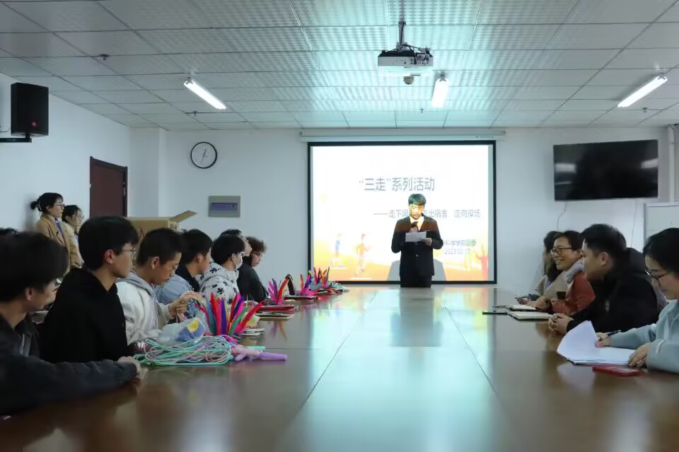 本网讯 为认真贯彻落实党的二十大提出的“广泛开展全民健身活动,加强青少年体育工作,促进群众体育和竞技体育全面发展,加快建设体育强国”,积极响应团中央、教育部《关于开展大学生“走下网络、走出宿舍、走向操场”主题群众性课外体育锻炼活动的通知》的号召,3月17日中午,生命科学学院在行知楼1502会议室开展了“三走”系列活动动员会。生命科学学院党委副书记杨娜、团委书记黄洁、辅导员杨帆、张瑜婷以及生科院各班班长、团支书、体育委员参加了此次会议。