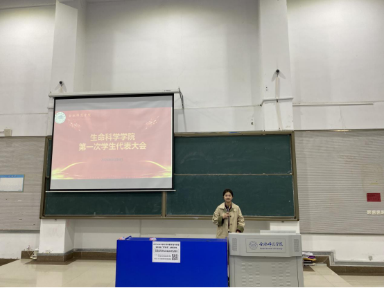 本网讯 为选举产生合肥师范学院第三次学生代表大会的学生代表以及生命科学学院新一届学生会主席团,进一步推进学生会内涵式发展,生命科学学院于11月4日在逸夫楼西阶2召开了第一次学生代表大会。生命科学学院党委书记郭桃芬,分团委书记黄洁以及辅导员高欢出席大会。会议由黄洁主持。
