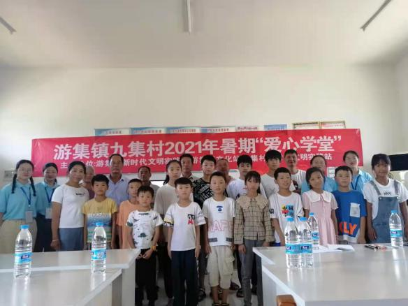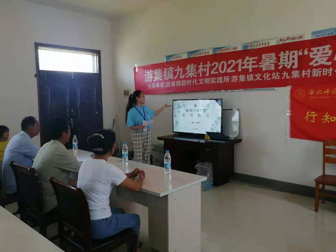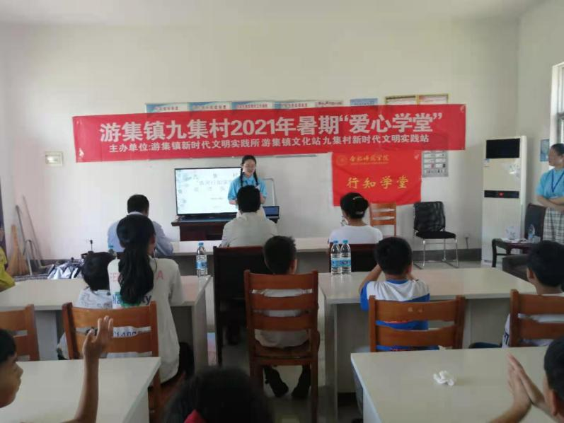 7月10日,合肥师范学院生命科学学院“练河行知学堂”正式开班。来自生命科学学院的5名小先生王赛男、王欣雅、吴双、徐莉平和徐怡在安徽省宿州市灵璧县游集镇文化站九集村举行了开班仪式,九集村党总支委员、妇联主任、新时代文明实践站负责人等领导代表共同出席了开班仪式。