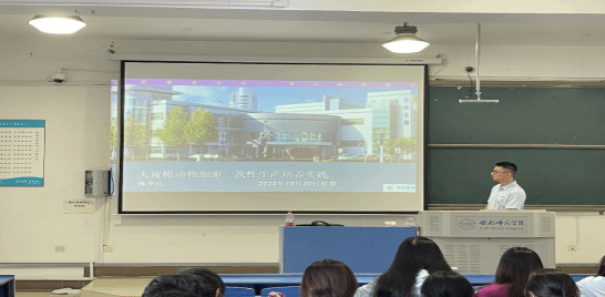 安徽安科生物工程(集团)股份有限公司生产中心副总经理、细胞培养部经理施李兵承担了《细胞工程》一课。施老师以《大规模动物细胞一次性生产培养实践》为题,从公司简介、细胞培养主角-CHO、细胞培养工艺简介、无菌保证要素、生产实例展示等多个主题,阐述了动物细胞在生物医药行业的应用。