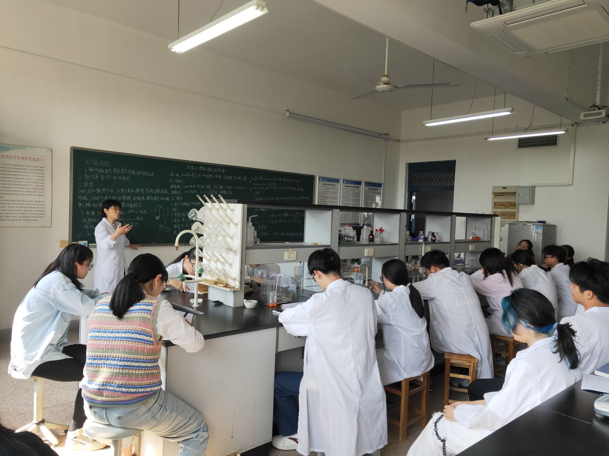 本次活动主要由教学经验丰富的王朝霞老师上实验示范观摩课,王老师为大家讲授了《生物化学实验》中的实验五:酵母RNA提取。王老师首先从实验原理、实验仪器与材料、实验步骤以及实验结果与分析等方面进行了详细讲解,随后进行了分组实验。教学过程中,王老师注重启发式教学和案例教学,能结合多种教学手段突破重难点;问题的设置循序渐进,突出了思维逻辑性;课程思政、科学素养教育巧妙地融入实验教学过程中,使学生的情感态度价值观得到有效提升,有效实现了课程目标。
