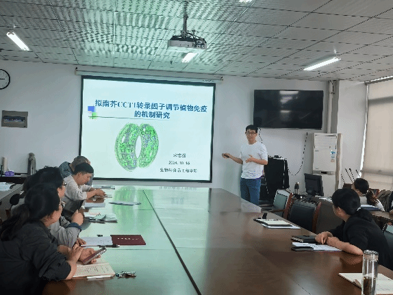 为了搭建青年教师学术交流合作平台,助力学院科研创新发展。beat365正版唯一官网拟举办青年博士系列论坛活动。2024年10月16日下午,宋志强博士作了题为“拟南芥CCT1转录因子调节植物免疫的机制研究”的首场学术报告。报告会由学院院长朱桂兰教授主持,全体教师参与了学习交流。