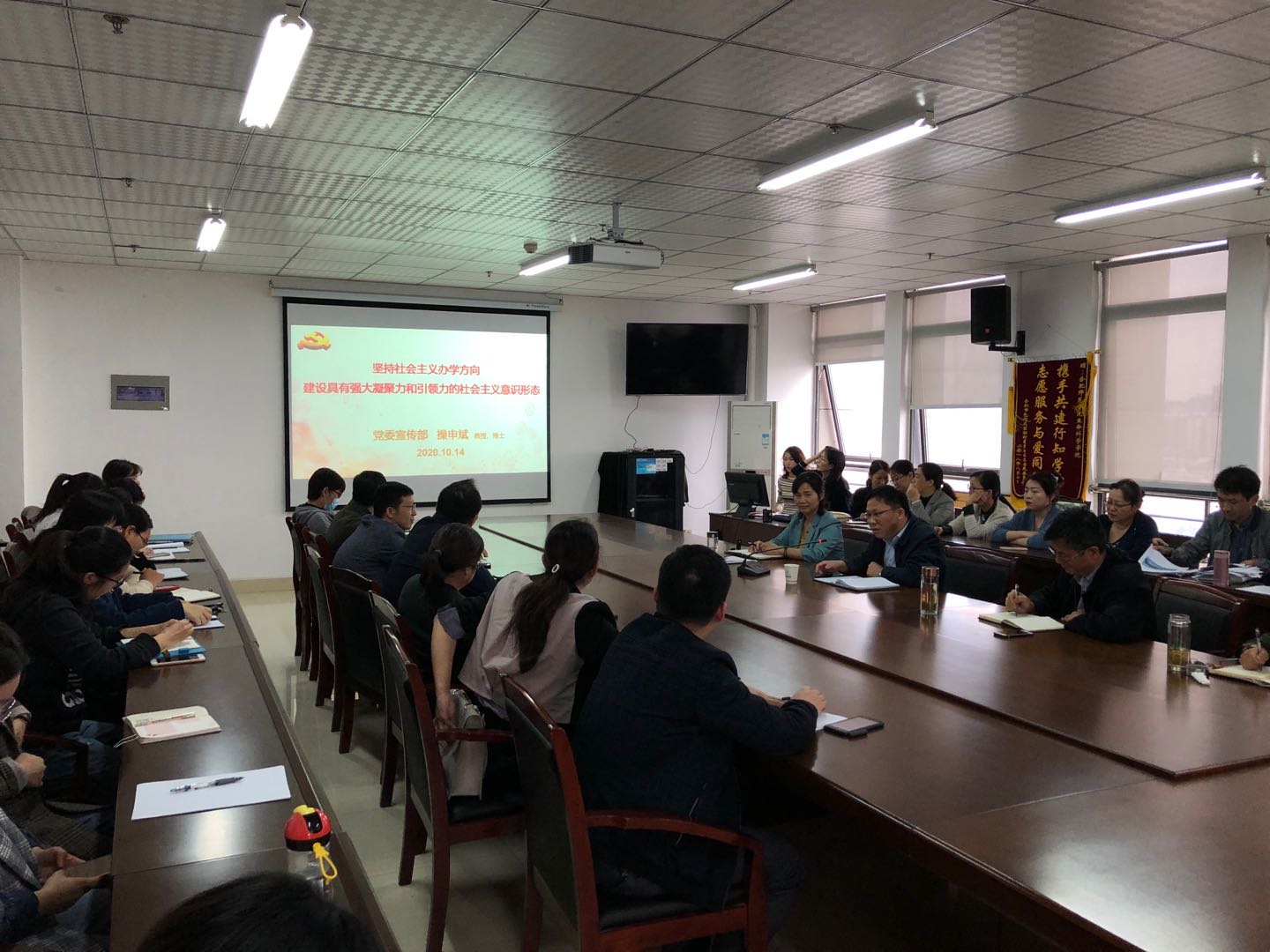 操申斌教授就“意识形态”的概念介绍、现状分析、阵地建设、高校意识形态工作重点等四个方面展开了深入浅出的论述,详细梳理了党的十八大以来,以习近平同志为核心的党中央高度重视意识形态工作,对新形势下加强和改进意识形态工作作出的一系列决策部署;通过分析我校大学生意识形态专题问卷调查结果,提出牢牢把握我校意识形态工作主动权的思路对策;带领全院教师深入学习中宣部、中组部、中央网信办印发的《关于规范党员干部网络行为的意见》,强调广大教师面对网络意识形态领域面临的新形势新挑战,要增强意识形态责任意识,做到守土有责、守土负责、守土尽责。