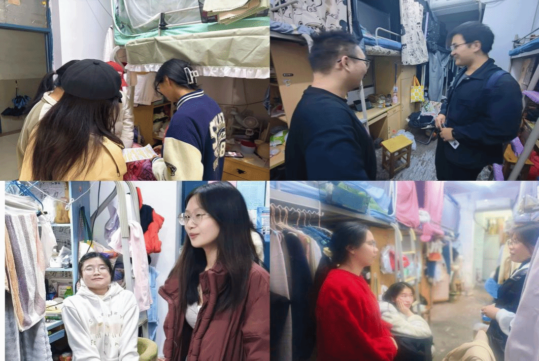 宿舍安全排查与防电诈教育同步发力、双向赋能。志愿者逐一走进新生宿舍,重点排查违规使用大功率电器、私拉乱接电线、插线板过载使用等安全隐患,对发现的问题现场耐心提醒、协助整改;结合宿舍安全管理规定,用“以案释法” 的方式强调规范用电的重要性,细致普及火灾逃生、应急避险等实用常识;针对部分宿舍物品摆放杂乱的问题,志愿者还分享了“分区收纳”“分类整理”等小技巧,引导新生共同营造整洁有序、安全和谐的宿舍居住环境。