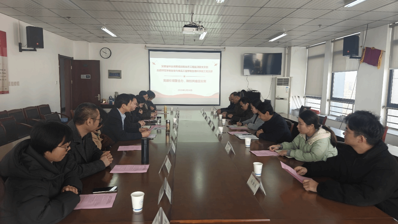 为深入推动党支部建设与业务工作深度融合,以高质量党建引领高质量发展,1月16日上午,beat365正版唯一官网生物科学教工党支部与安徽省林业调查规划院生态工程监测室党支部,开展以“党建引领聚合力,院校共建促发展” 为主题的党建共建活动。安徽省林业调查规划院党委委员、纪委书记、副院长卢萍一行七人参加活动。学院副院长陈金武主持活动,生物科学教工党支部书记朱勇等参加会议。