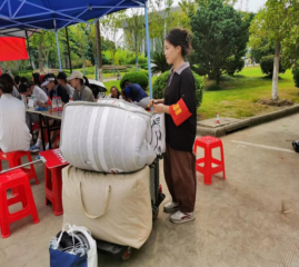 当新生进入校园后,戴着“红袖章”的党员们一路为学弟学妹们提供指引,帮助新生们搬运行李,介绍大学学习生活情况。烈日炎炎,他们用实际行动诠释了党员的责任与担当,给予了新生入校时的一份温暖,也向新生家长们展示了合师青年学子乐于奉献的精神风貌。