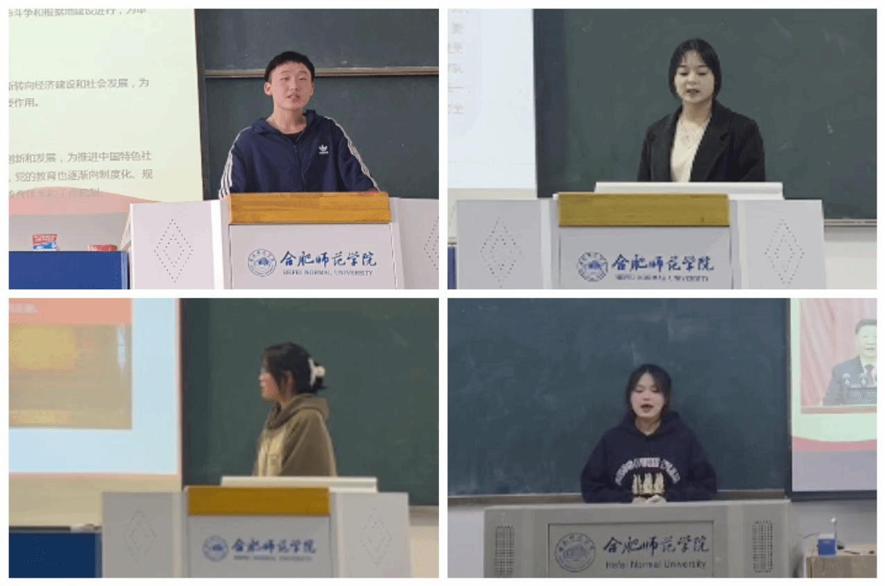 2022级生物科学师范班庞宇晴同学以《弘扬伟大建党精神,争做时代好青年》为主题,从伟大建党精神的深刻内涵和重大意义两个方面,讲述了新时代弘扬伟大建党精神的必要性,呼吁新时代青年发扬伟大建党精神,践行“请党放心、强国有我”的青春誓言。
