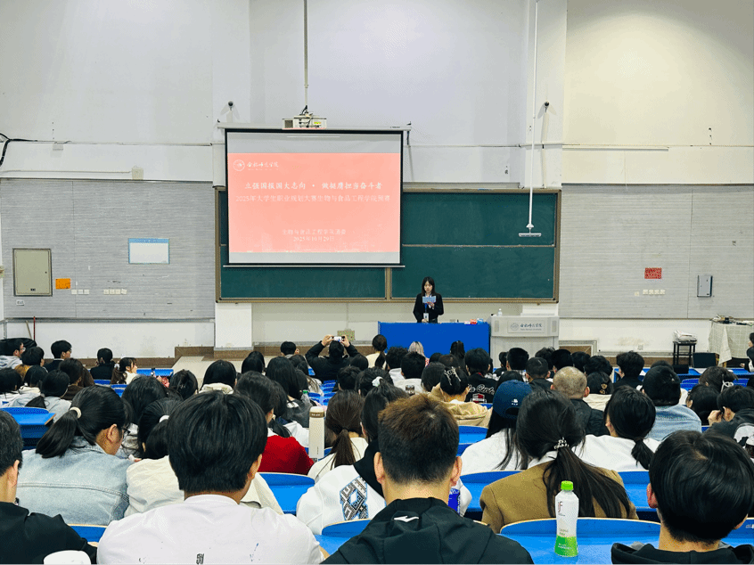 比赛现场,选手们通过“职业规划书陈述+PPT展示”相结合的形式,系统阐述了各自的职业目标与发展路径,实现目标设定的科学性、路径规划的可行性以及个人能力与职业方向的高度契合。同学们立足专业背景,紧密结合生物技术与食品工程领域的产业趋势与前沿动态,对个人职业发展进行了深入剖析与清晰规划。评委们从规划内容完整性、实施方案可行性、表达逻辑性与现场表现力等多个维度进行综合评审,并在答辩环节中围绕关键问题与选手展开深入交流,提出了具体中肯的指导意见,助力学生进一步优化职业路径、明确成长方向。