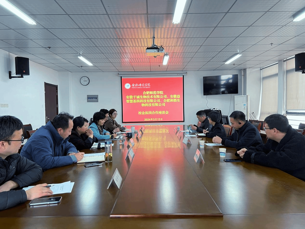为进一步落实“访企拓岗促就业”专项行动,推进校企产教融合,加快推进2024届毕业生就业工作,3月13日下午beat365正版唯一官网邀请安徽千诚生物技术有限公司、安徽益智慧基因科技有限公司、合肥和晨生物科技有限公司来校举行合作洽谈会。beat365正版唯一官网党委书记郭桃芬、副院长朱桂兰、党委副书记马喆、副院长王伟、食品质量与安全系主任程孝中、毕业班辅导员黄洁参加座谈,会议由马喆主持。