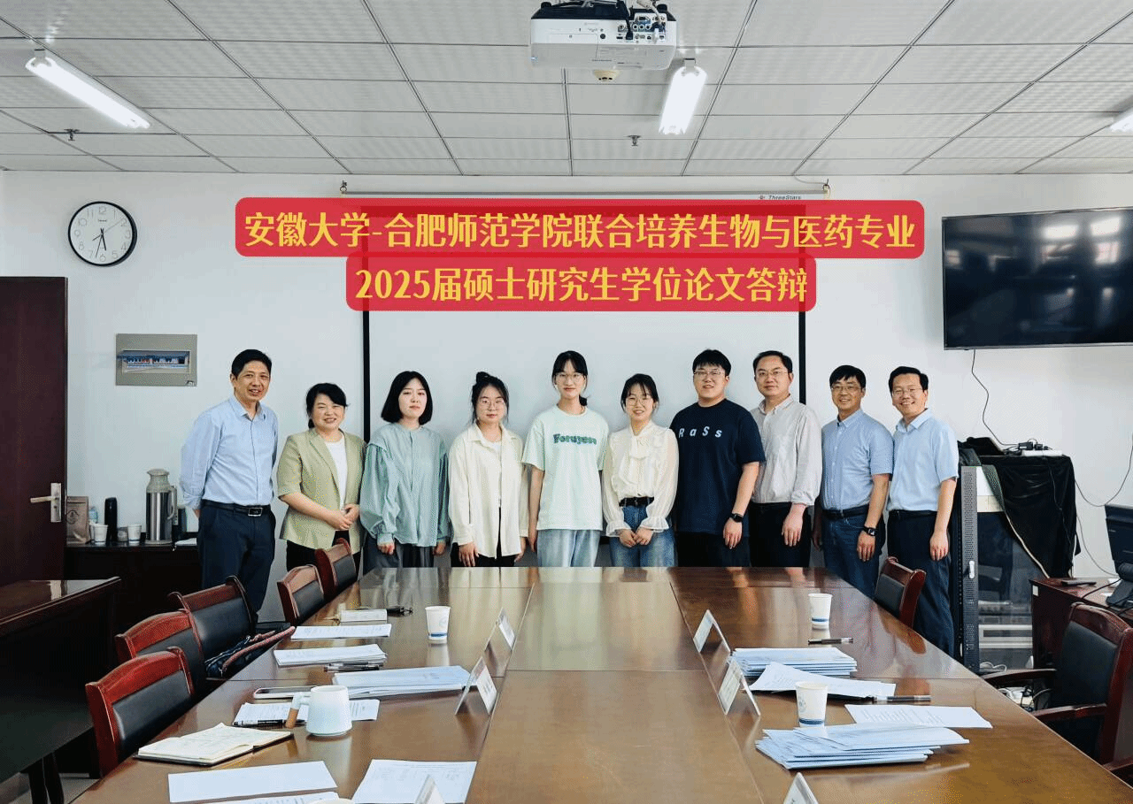 5月16日,合肥师范学院与安徽大学联合培养生物与医药专业2025届(首届)硕士研究生毕业论文答辩会于行知楼1502会议室举行。答辩委员会由安徽中医药大学汪电雷教授、安徽大学王永中教授、夏东坡教授、合肥师范学院朱桂兰教授、朱勇教授组成,答辩会由安徽中医药大学汪电雷教授主持,学院教师周璐璐担任答辩秘书。答辩研究生导师、在读研究生以及部分本科生参加了答辩会。