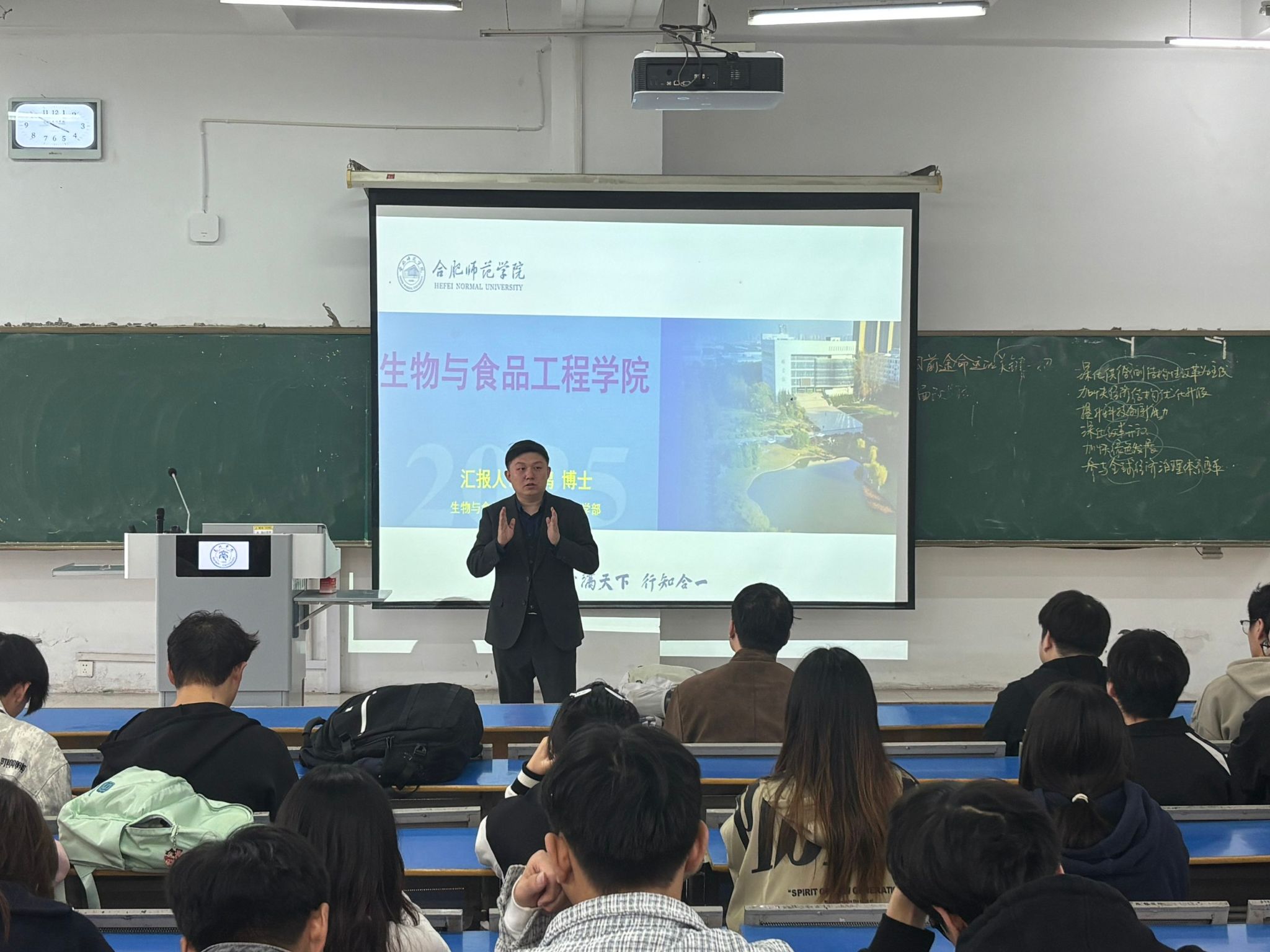为吸引更多优秀生源报考我校beat365正版唯一官网硕士研究生,10月14日至15日,学院党委副书记李万成、生物制药系主任张雁、研究生教学部周鹏老师组成研究生招生宣讲团赴亳州学院、淮南师范学院等校开展招生宣讲会。亳州学院生物与食品工程系、淮南师范学院生物工程学院近100名有考研意向的学子参加了宣讲会。